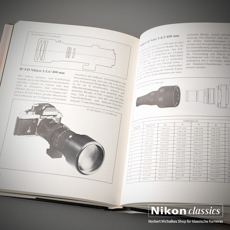 Buch mit ausführlicher Beschreibung der damaligen Kameras (F2, FM, FE, EL2 und Nikkormat FT3) und Objektive sowie vielen Infos rund um das komplete Nikon-System.