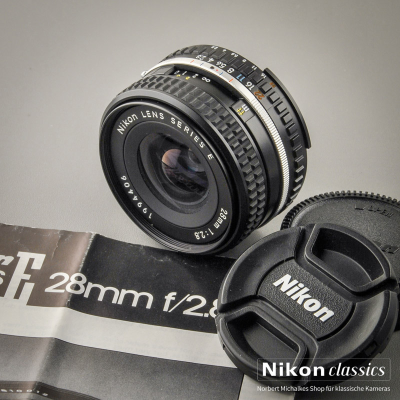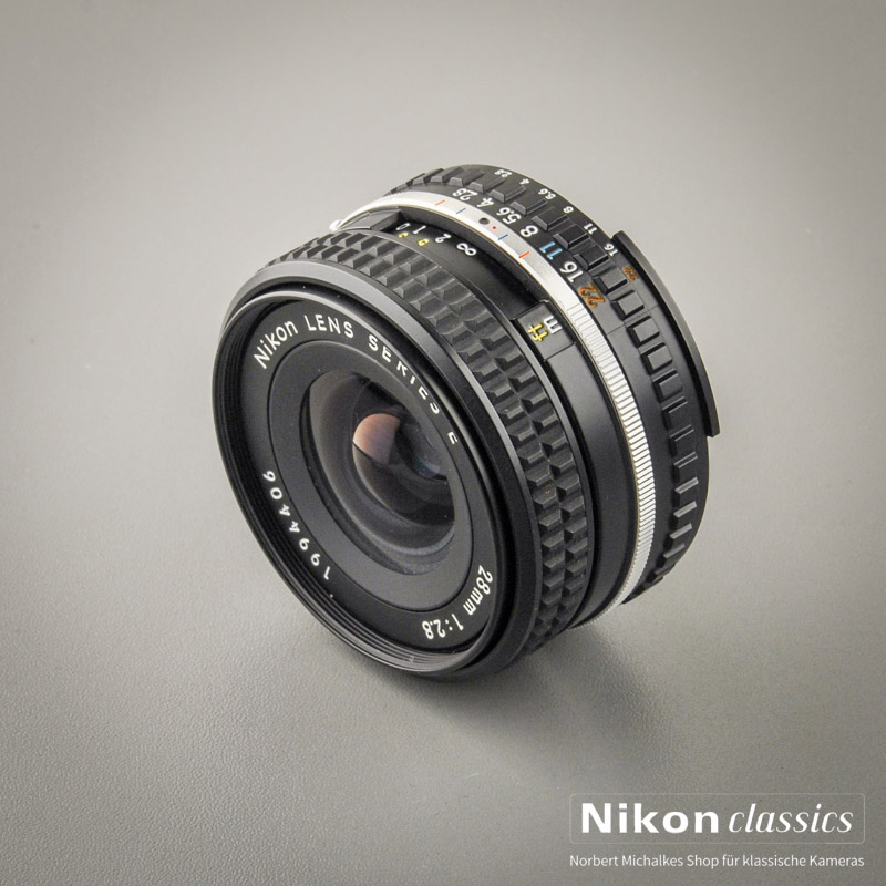 Das kompakte kleine Weitwinkelobjektiv der oft zu Unrecht geschmähten Nikon Serie E. In der optischen Leistung kommt es nicht ganz an die extreme Qualität des "grossen Bruders" Nikkor 28/2,8 AIS heran, ist aber durch den Einsatz von hochwertigen Kunststoffen deutlich leichter und preiswerter!