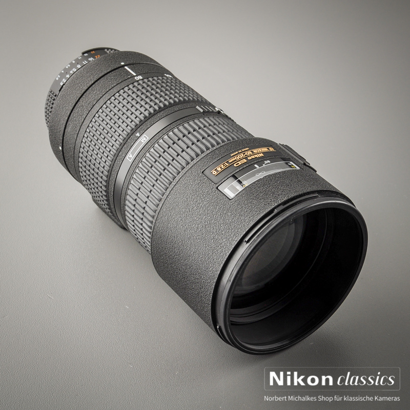 Das gefragte Nikon Drehzoom AF D-ED 2,8/80-200! Der Unterschied zum Vorgänger-Schiebezoom: Deutlich schnellerer Autofokus, stabile, drehbare Stativschelle und ergonomischeres Arbeiten mit Drehring zum Zoomen. "Best Buy" für Fotorafen, die absolute Profiqualität suchen, aber nicht die teuren neueren und störanfälligen AF-S - VR-Linsen brauchen.