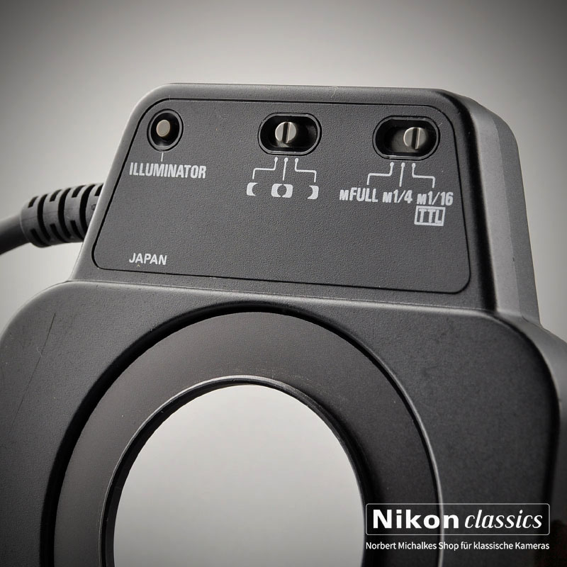 Sehr gut erhaltenes Gebrauchtgerät ohne nennenswerte Gebrauchsspuren (siehe Fotos) und voll funktionsfähig. Kommt komplett inklusive Steuereinheit AS-14, Tasche, Streuscheibe und dem Montagering für 52mm-Filtergewinde. Die abgebildetete Kamera ist natürlich nicht dabei.