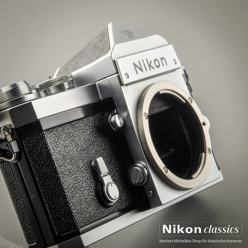 Die Nikon F war von überzeugender Qualität und einer extrem hohen Verlässlichkeit. Sie war die erste Spiegelreflexkamera, die ein 100%ig genaues Sucherbild hatte. Ausgestattet mit dem damals entwickelten Nikon-F-Bajonett, das über die Jahrzehnte stets kompatibel geblieben ist. An der angebotenen Kamera lassen sich sogar moderne AF-Objektive verwenden (natürlich nur manuell)! Passender wirken natürlich zeitgemäße Objektive, die Sie in meinem shop finden.