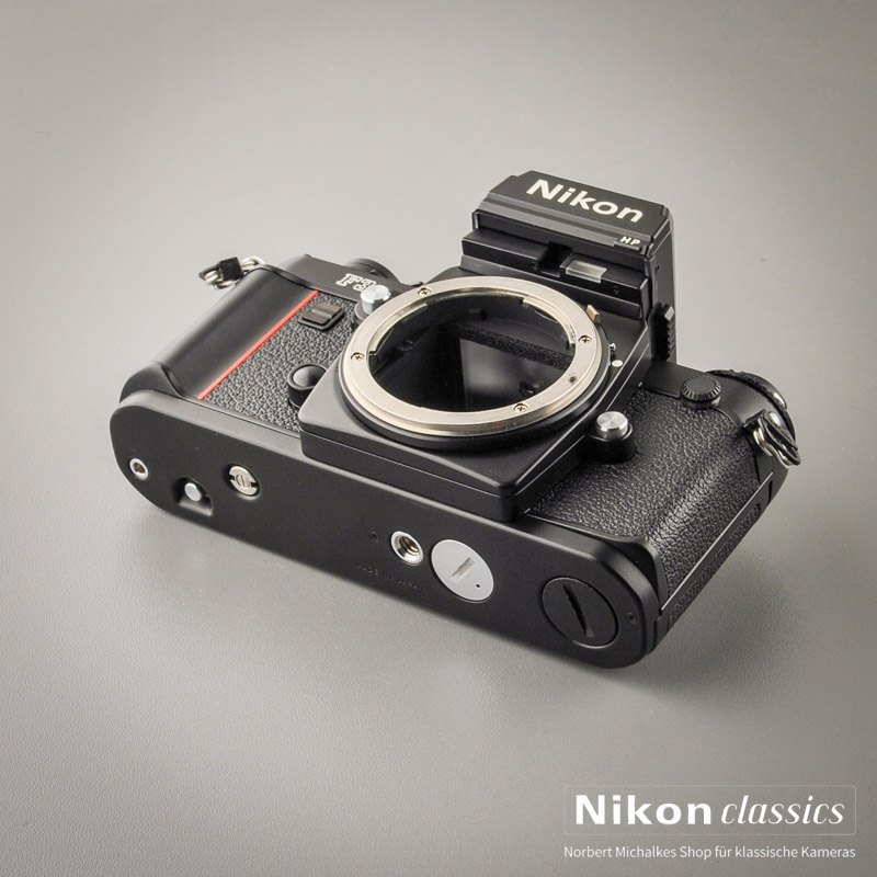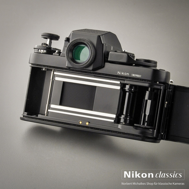 Sehr guter Zustand ohne Gebrauchsspuren. Die Kamera ist natürlich voll funktionfähig wie am ersten Tag. Die LCDs sind noch klar ablesbar. Die Abdeckkappe für den Motoranschluss ist dabei, im Sucher befindet sich die Standardmattscheibe mit Mikroprismen und Schnittbildindikator. Spiegeldämpfer und Rückwanddichtungen sind neu.