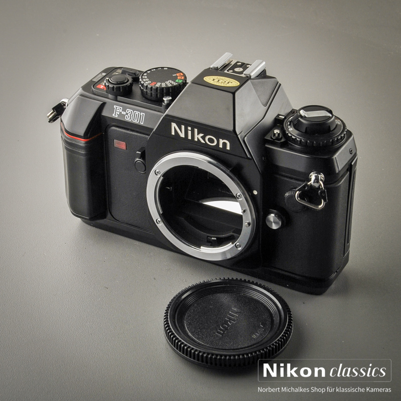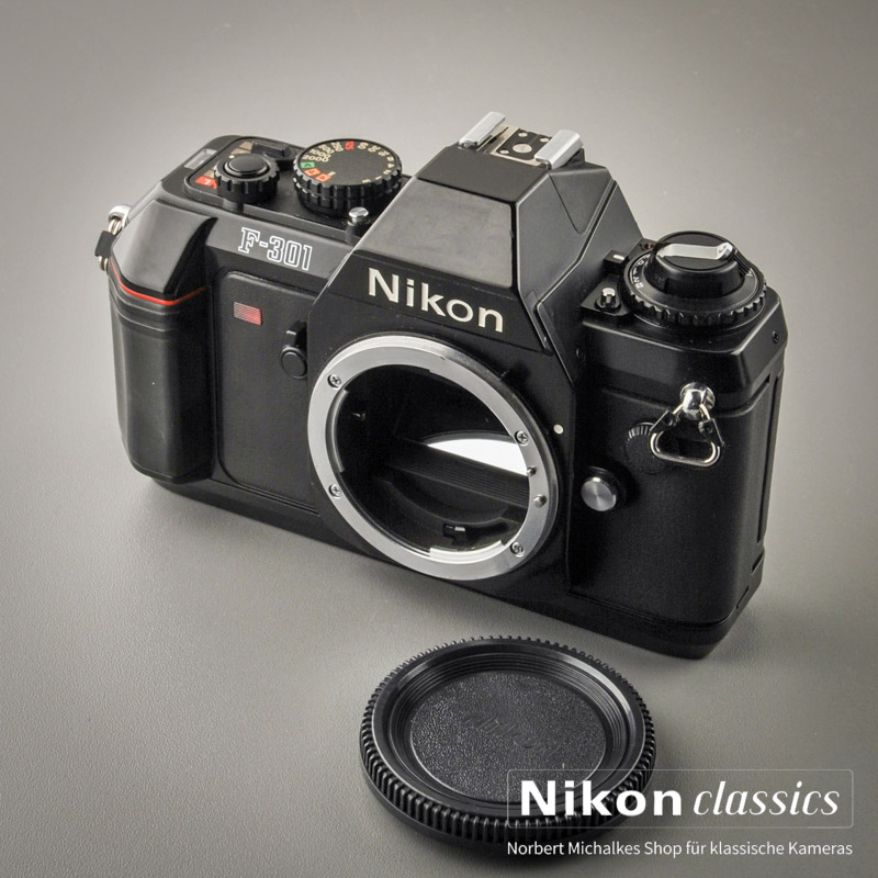 Die F301 war die erste Kamera einer neuen Generation. Zwar noch ohne Autofokus, verfügte sie aber über einen motorischenn Filmtransport. Neben den manuellen Verschlußzeiten von 1/2000 - 1 Sek. und B verfügt die F-301 über eine normale Zeitautomatik sowie die beiden Programmautomatiken P und P Hi.