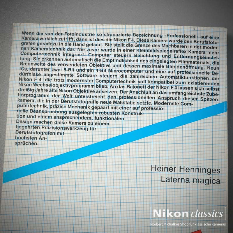 Ausführliche Beschreibung der Kamerafunktion und des damaligen Nikon-Systemzubehörs.