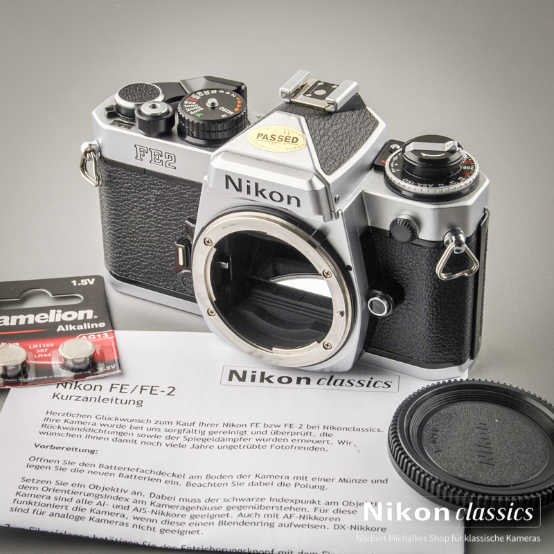 Die seit März 1983 ausgelieferte Nikon FE-2 als verbesserte Ausgabe der FE erhielt einige neue, durch die technische Entwicklung damals inzwischen möglich gewordene Eigenschaften: Titanlamellenverschluss mit der kürzesten Belichtungszeit von 1/4000sec, eine mechanische Belichtungszeit bei Batterieausfall von 1/250sec und eine TTL-Blitzbelichtungsmessung. Mit der Nikon FE2 kamen die neuen Einstellscheiben vom Typ K 2, B 2 und E 2, die eine um etwa 1/3 Blende gesteigerte Helligkeit aufweisen. Um die Erschütterungen durch den Schwingspiegel noch weiter zu reduzieren, ist unter dem Spiegel eine gegenläufige Platte eingebaut. Die Produktion dieser verbesserten Ausgabe und an der Typenbezeichnung rein äußerlich leicht erkennbaren Nikon FE-2 wurde durch diese neuen Features allerdings wesentlich verteuert. Als die Produktion der Nikon FE2 Ende 1987 eingestellt wurde, ging ein Aufschrei durch die Nikon Fan-Gemeinde, und die Preise für eine gebrauchte Nikon FE2 schossen nach oben, teilweise über den Neupreis. Gehörte sie doch noch zu der immer kleiner werdenden Gruppe der klassischen Spiegelreflexkameras ohne eingebauten Motor, Multiprogramme und Autofokus.