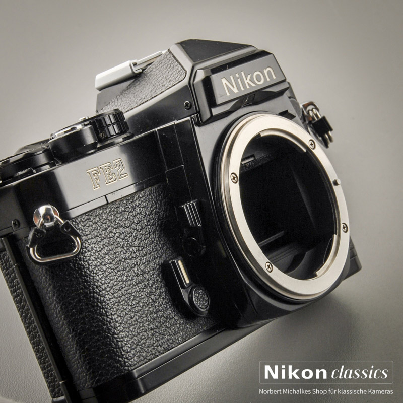 Die seit März 1983 ausgelieferte Nikon FE-2 als verbesserte Ausgabe der FE erhielt einige neue, durch die technische Entwicklung damals inzwischen möglich gewordene Eigenschaften: Titanlamellenverschluss mit der kürzesten Belichtungszeit von 1/4000sec, eine mechanische Belichtungszeit bei Batterieausfall von 1/250sec und eine TTL-Blitzbelichtungsmessung. Mit der Nikon FE2 kamen die neuen Einstellscheiben vom Typ K 2, B 2 und E 2, die eine um etwa 1/3 Blende gesteigerte Helligkeit aufweisen. Um die Erschütterungen durch den Schwingspiegel noch weiter zu reduzieren, ist unter dem Spiegel eine gegenläufige Platte eingebaut. Die Produktion dieser verbesserten Ausgabe und an der Typenbezeichnung rein äußerlich leicht erkennbaren Nikon FE-2 wurde durch diese neuen Features allerdings wesentlich verteuert. Als die Produktion der Nikon FE2 Ende 1987 eingestellt wurde, ging ein Aufschrei durch die Nikon Fan-Gemeinde, und die Preise für eine gebrauchte Nikon FE2 schossen nach oben, teilweise über den Neupreis. Gehörte sie doch noch zu der immer kleiner werdenden Gruppe der klassischen Spiegelreflexkameras ohne eingebauten Motor, Multiprogramme und Autofokus.