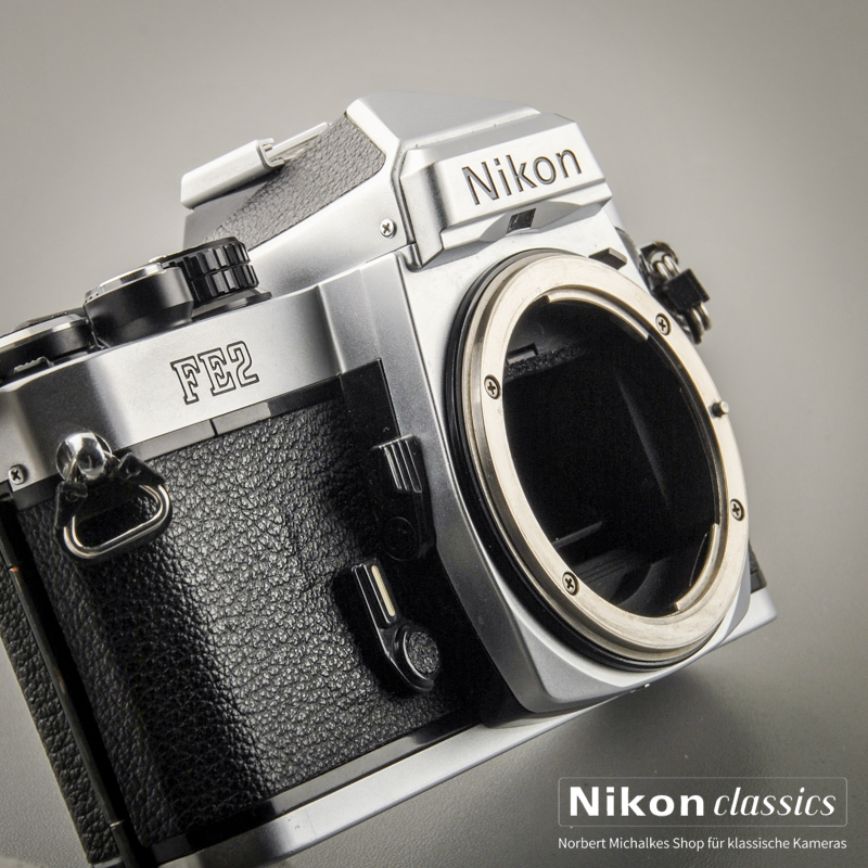 Die seit März 1983 ausgelieferte Nikon FE-2 als verbesserte Ausgabe der FE erhielt einige neue, durch die technische Entwicklung damals inzwischen möglich gewordene Eigenschaften: Titanlamellenverschluss mit der kürzesten Belichtungszeit von 1/4000sec, eine mechanische Belichtungszeit bei Batterieausfall von 1/250sec und eine TTL-Blitzbelichtungsmessung. Mit der Nikon FE2 kamen die neuen Einstellscheiben vom Typ K 2, B 2 und E 2, die eine um etwa 1/3 Blende gesteigerte Helligkeit aufweisen. Um die Erschütterungen durch den Schwingspiegel noch weiter zu reduzieren, ist unter dem Spiegel eine gegenläufige Platte eingebaut. Die Produktion dieser verbesserten Ausgabe und an der Typenbezeichnung rein äußerlich leicht erkennbaren Nikon FE-2 wurde durch diese neuen Features allerdings wesentlich verteuert. Als die Produktion der Nikon FE2 Ende 1987 eingestellt wurde, ging ein Aufschrei durch die Nikon Fan-Gemeinde, und die Preise für eine gebrauchte Nikon FE2 schossen nach oben, teilweise über den Neupreis. Gehörte sie doch noch zu der immer kleiner werdenden Gruppe der klassischen Spiegelreflexkameras ohne eingebauten Motor, Multiprogramme und Autofokus.