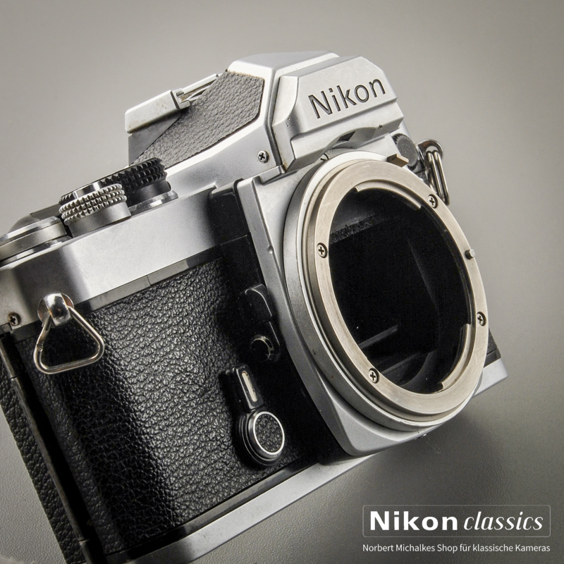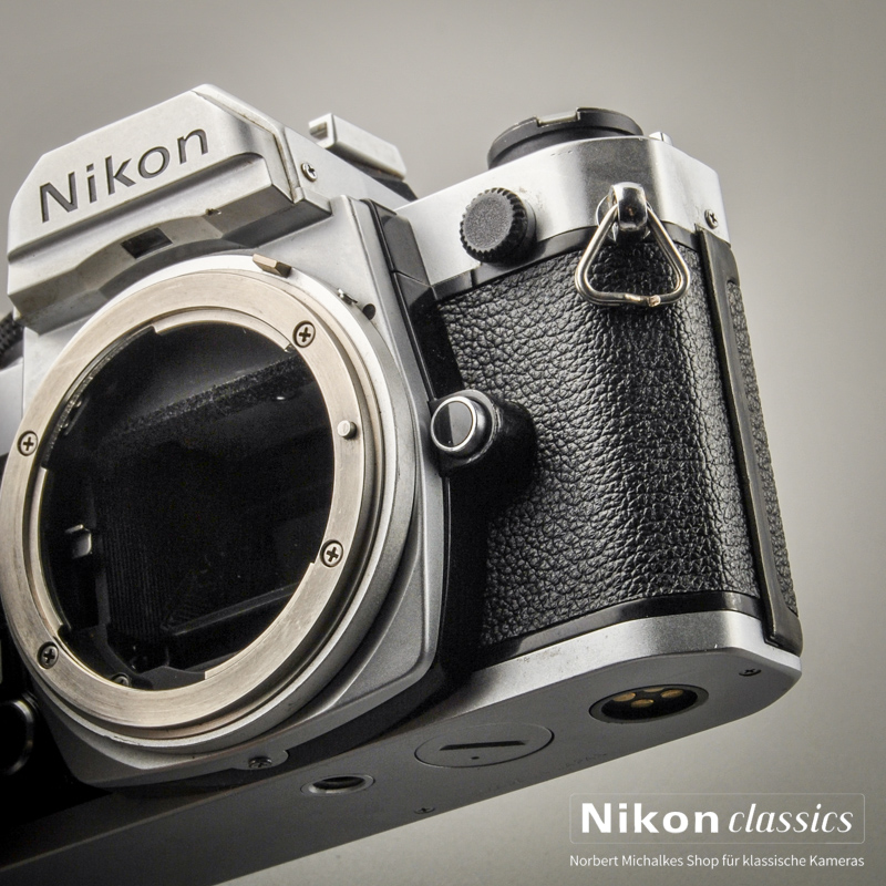 Ein Kamera-Klassiker für manuellen Betrieb mit eingebautem Belichtungsmesser. Es lassen sich fast alle alten und modernen Nikon-Objektive verwenden, bis hin zu AF-Nikkoren (keine G-Nikkore). Die am Objektiv eingestellte Blende wird oberhalb des Sucherbildes eingespiegelt.
