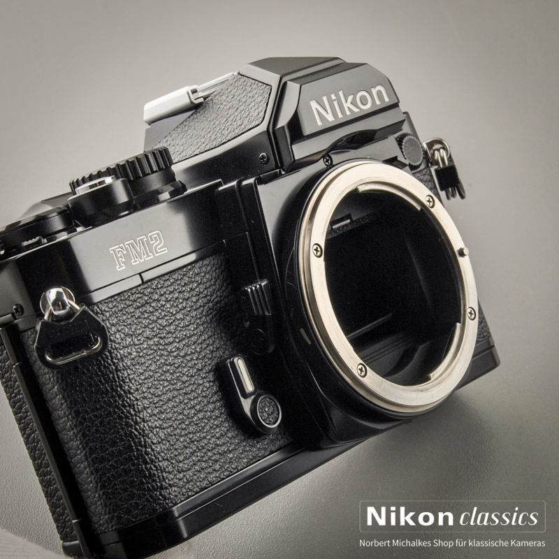 Der legendäre und unverwüstliche Klassiker, funktioniert notfalls auch ohne Batterien. 1984 wurde die FM2 überarbeitet, die neue Version hat die Blitzsynchronzeit 1/250 s und wurde mit einer helleren und jetzt auch wechselbaren Einstellscheibe vom Typ K2 ausgerüstet. Auch die neue Version trägt die Bezeichnung FM2, jedoch wurde die Seriennummer der überarbeiteten Version durch ein führendes "N" ergänzt. Sie kann von der ursprünglichen Variante außerdem durch die in der normalen Zeitenreihe rot markierte Blitzsynchronzeit "250" statt "125" unterschieden werden. Die vorher separat markierte und einstellbare Synchronzeit "X200" fehlt beim neueren Modell.