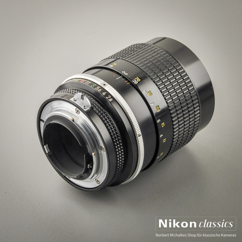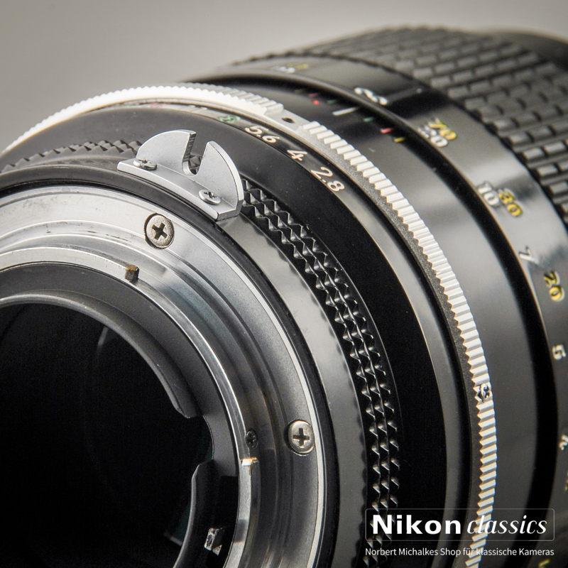 Ohne AI-Kupplung. Verwendbar an alten Nikkormat, Nikon F und F2. An den analogen Nikons F3, F4, FE und FM