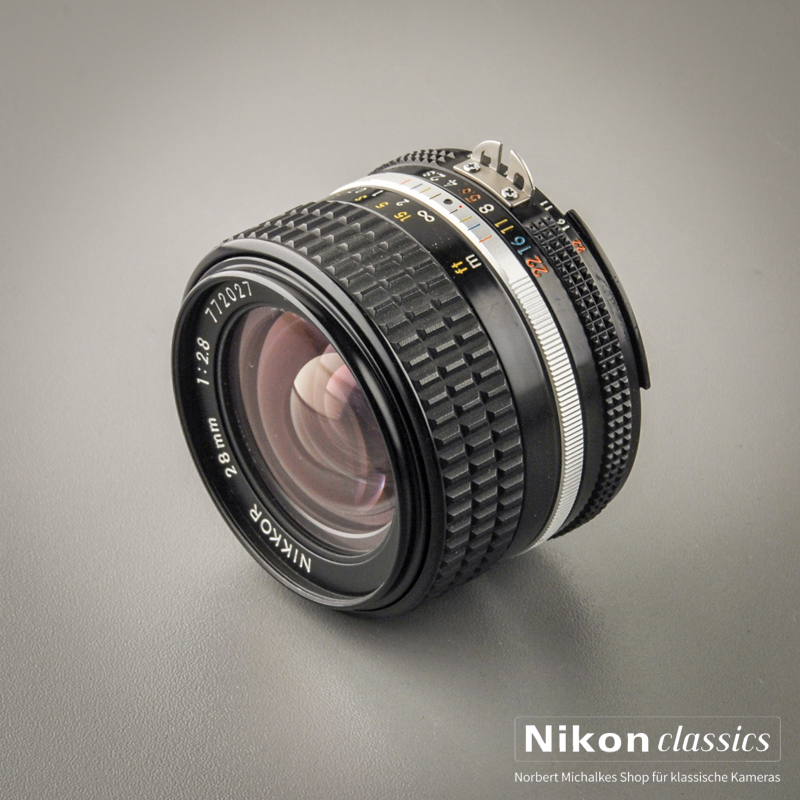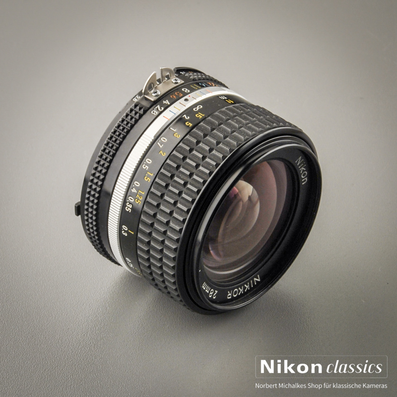 Das klassische Weitwinkelobjektiv 28mm/1:2,8 für Schärfefanatiker. Eines der besten Objektive, die Nikon je gebaut hat, auch geeignet für Digitalkameras. Die Schärfe dieses Objektives ist legendär! Es unterscheidet sich von der älteren AI-Version durch eine kürzere Einstellentfernung von 0,2 Meter und die "floating Elements": Linsengruppen, die sich während des Fokussierens gegeneinander verschieben und so bei jedem Abbildungsmassstab ein optimales Ergebnis garantieren. Nikon-Guru Ken Rockwell schreibt dazu: