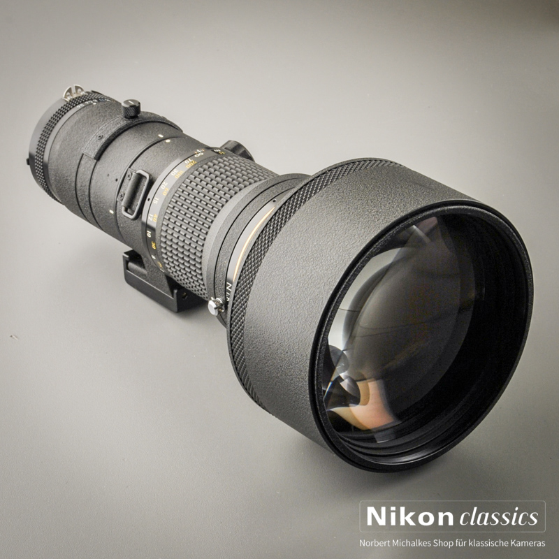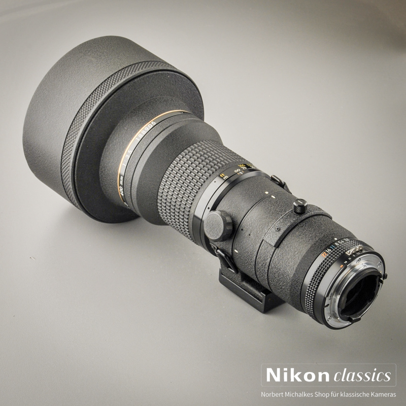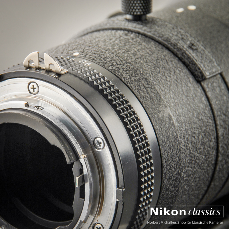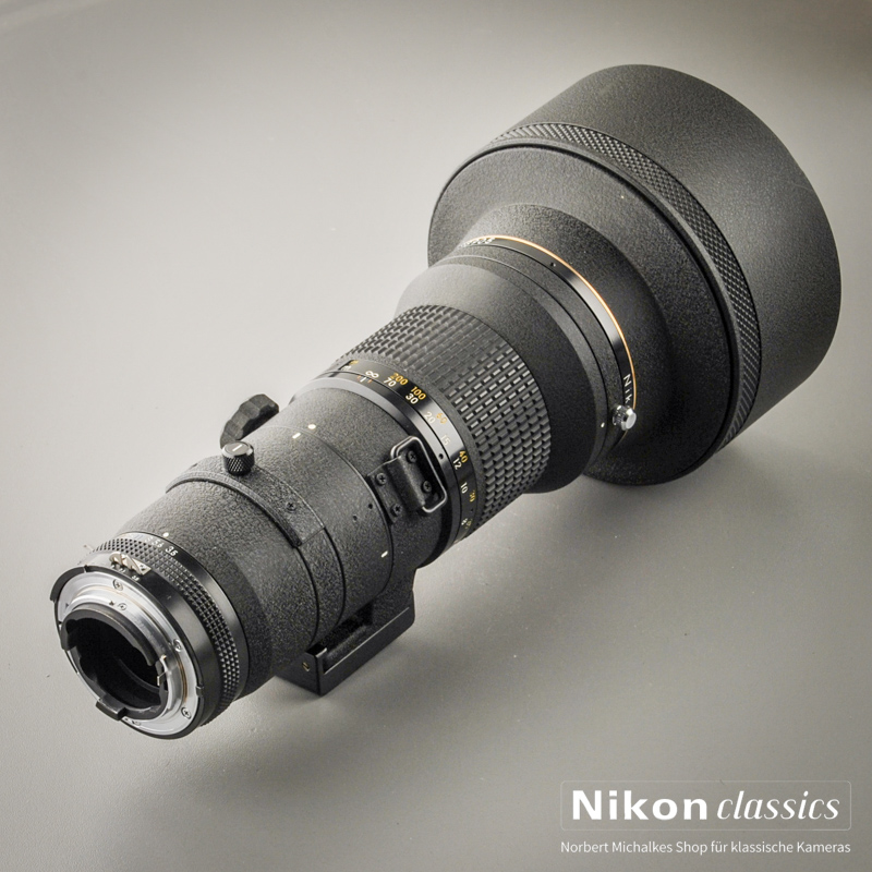 Dieses revolutionäre hochlichtstarke 400er Nikkor war in den achzigern das Traumobjektiv und Arbeitspferd vieler Berufsfotografen. Mit ED-Glas und leichtgängiger Innenfokussierung. Der Achtlinser ist auf hohen Kontrast schon bei offener Blende getrimmt, so daß ein Abblenden nur die Schärfentiefe erhöht. Solider, drehbarer Stativanschluss, Naheinstellung bis 4,5 Meter.