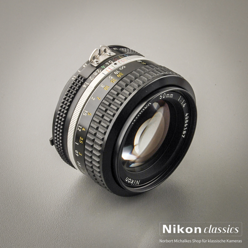 Das klassische manuelle hochlichtstarke Normalobjektiv 50mm/1:1,4. Nikon Standard-Filtergewinde 52mm.