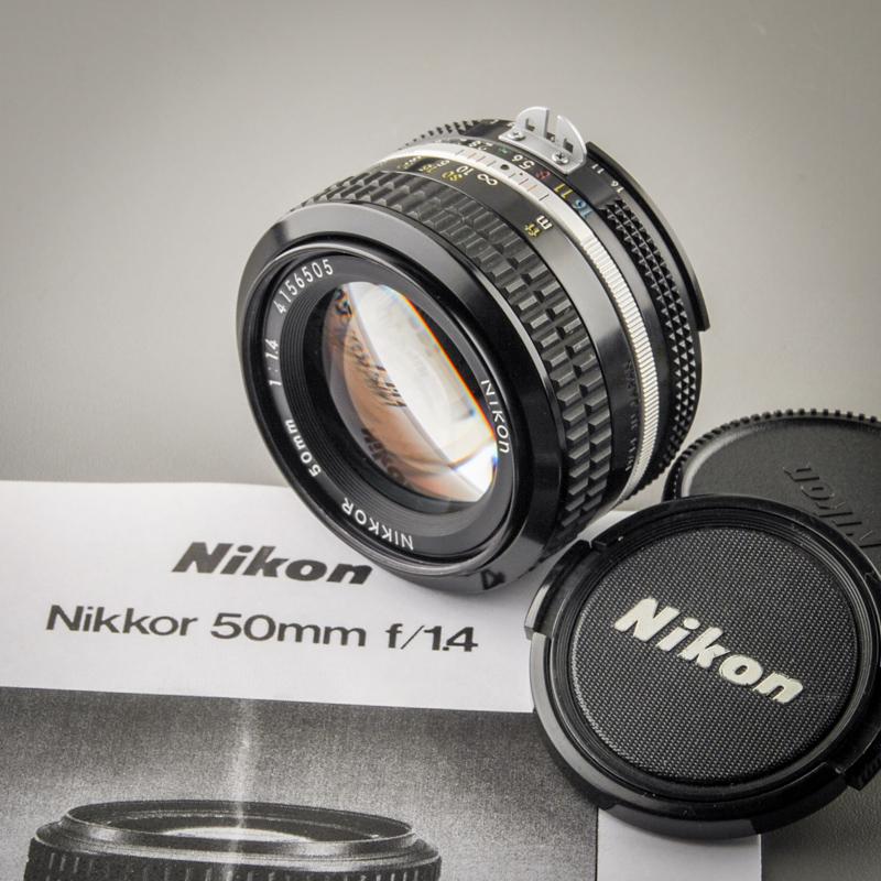 Das klassische manuelle hochlichtstarke Normalobjektiv 50mm/1:1,4. Nikon Standard-Filtergewinde 52mm.