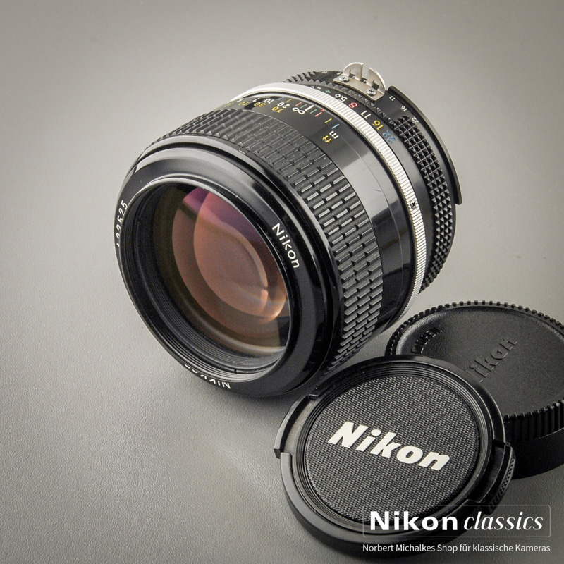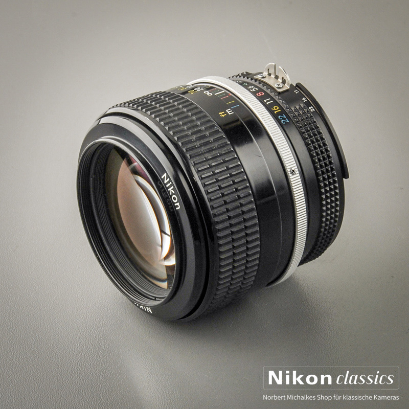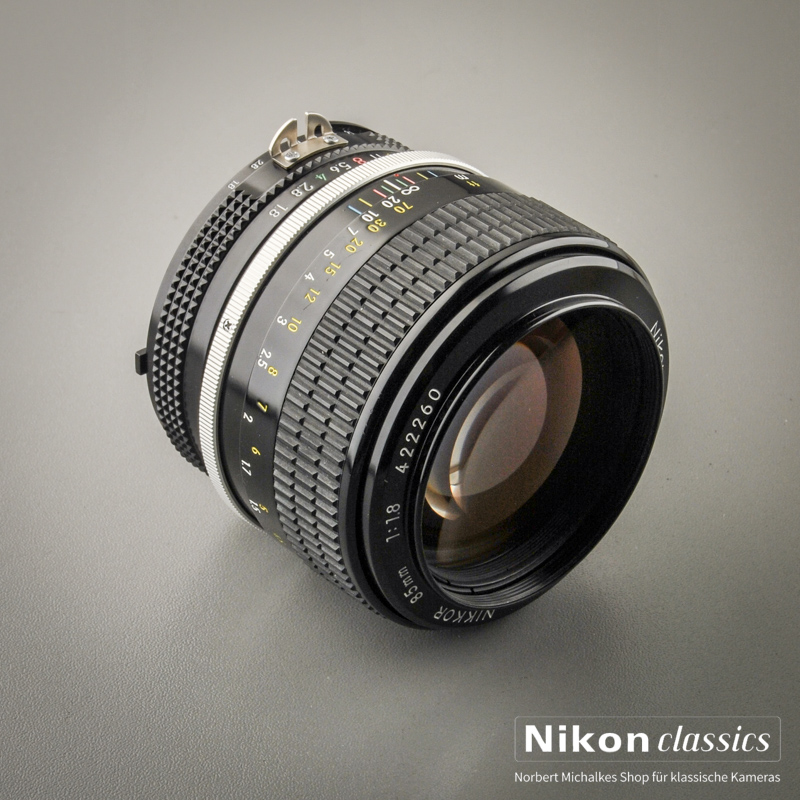Das erste 85er für die Nikon F war das 85/1,8, das 1964 vorgestellt wurde. Ein Sechslinser mit einer ausgewogenen Abstimmung zwischen Schärfeleistung und Kontrast und zusammen mit dem 35/2,0 die Grundausrüstung vieler Bildjournalisten. Dies ist die letzte Baureihe dieses legendären Objektives, Baujahr 1976.