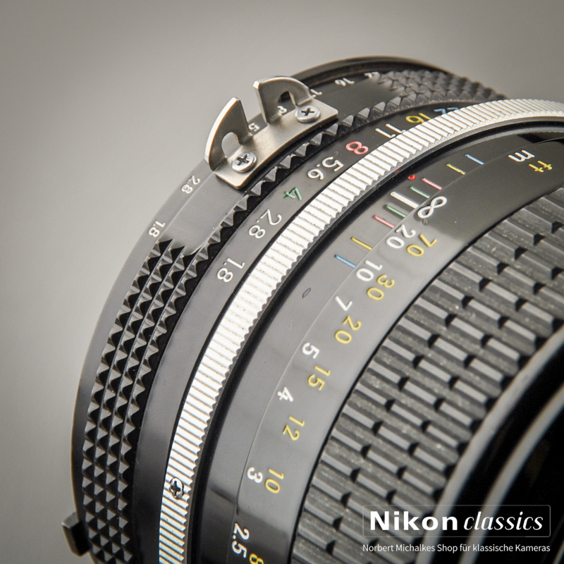 Mit Nikon Originalteilen auf AI konvertiert. Passt mit vollem Funktionsumfang an alle je gebauten Nikon-Spiegelreflexkameras für Kleinbildfilm, auch an die AF-Kameras (natürlich dann mit manuellen Fokus).