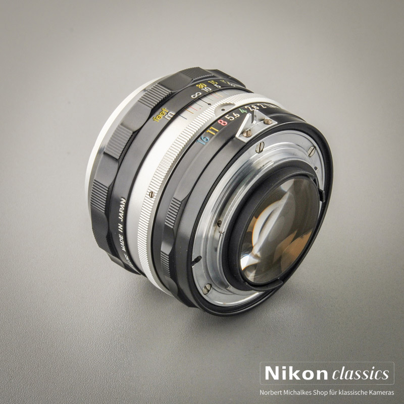 Ohne AI-Kupplung. Verwendbar an alten Nikkormat FTN und EL, Nikon F und F2 sowie F2S und F2SB. An digitalen Nikons D5000, D3100, D3000, D60, D40(x) im rein manuellen Betrieb (ohne Innenmessung) verwendbar!