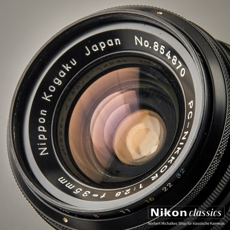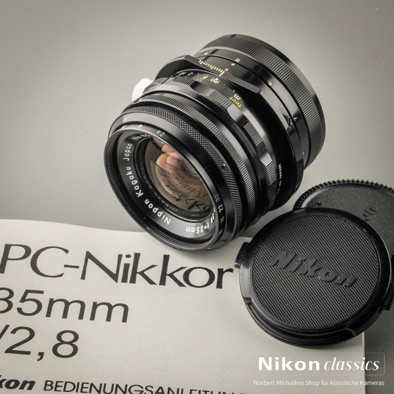 Spezialobjektiv zur Vermeidung stürzender Linien bei Architekturaufnahmen. Auch bestens für Panoramafotografie geeignet. Der Objektivtubus lässt sich mit Hilfe eines Einstellknopfes bis zu 11mm in einer Schwalbenschwanzführung verschieben. Das angebotene Objektiv ist die verbesserte Version des 1965 erschienenen PC 35/3,5 und bietet eine höhere Lichtstärke und verbesserte Randschärfe. Da die Blende und die Entfernung manuell eingestellt werden, ist das Objektiv an allen je gebauten Nikon Spiegelreflexkameras (digital und analog) verwendbar.