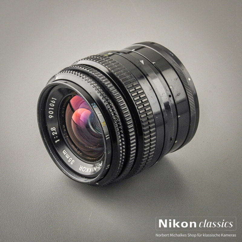 Spezialobjektiv zur Vermeidung stürzender Linien bei Architekturaufnahmen. Auch bestens für Panoramafotografie geeignet. Der Objektivtubus lässt sich mit Hilfe eines Einstellknopfes bis zu 11mm in einer Schwalbenschwanzführung verschieben. Das angebotene Objektiv ist die verbesserte Version des 1965 erschienenen PC 35/3,5 und bietet eine höhere Lichtstärke und verbesserte Randschärfe. Da die Blende und die Entfernung manuell eingestellt werden, ist das Objektiv an allen je gebauten Nikon Spiegelreflexkameras (digital und analog) verwendbar.