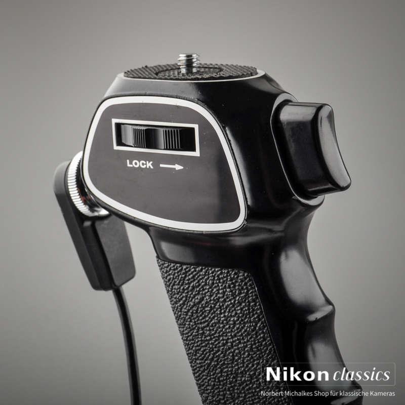 Der Pistolengriff ergibt eine bequeme Stütze und Auslösung für Kameras mit aufgesetzten Iangen Tele- oder Zoom-Objektiven oder mit einem Motorantrieb. Der Griff Iässt sich am Stativgewinde der Kamera oder des Objektivs befestigen, und ein Zubehörkabel verbindet den Auslöser am Griff mit dem Auslöser der Kamera.