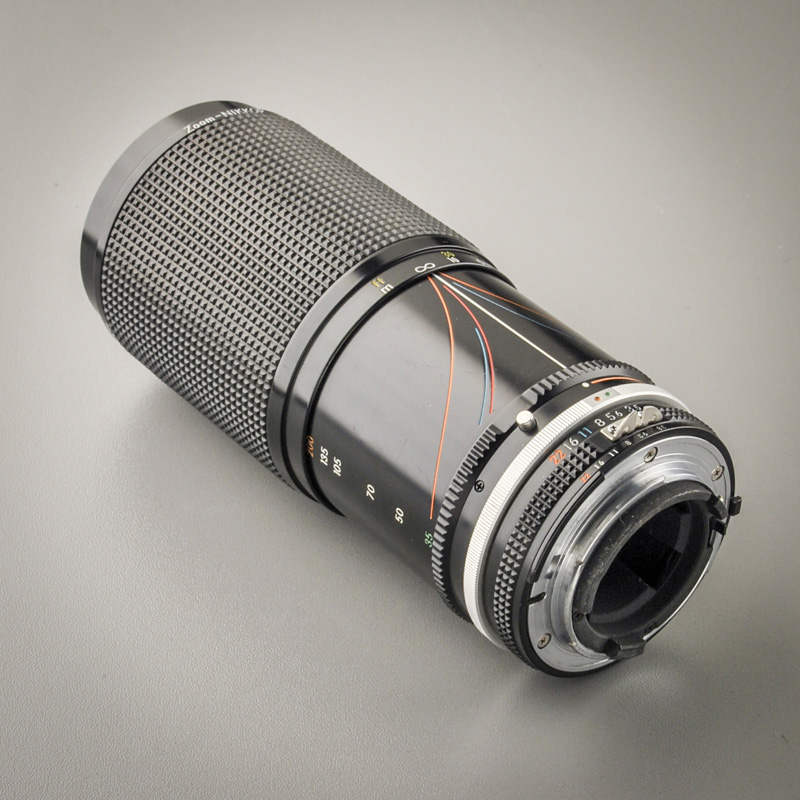 Dieses Schiebezoom bietet eine für diesen Brennweitenbereich hervorragende Abbildungsleistung. Lediglich im extremen Telebereich lässt sie etwas nach, ist aber trotzdem kein Vergleich zu den (zu Recht) verpönten "Suppenzooms" seiner Zeit. Das Objektiv verfügt über einen zuschaltbaren Makrobereich bis zum Abbildungsmassstab 1:4. Gute alte Nikon Vollmetall-Qualität.