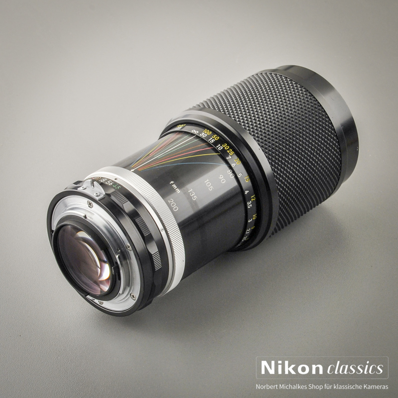 Ein Nikon Klassiker. Frühe Version (1974) des 80-200 mit erstaunlicher Leistung. Die Optik aus mehrschichtvergütetem Nikon-Glas höchster Qualität liefert bei allen Brennweiten scharfe, kontrastreiche Bilder bei ausgezeichneter Bildfehlerkorrektur.