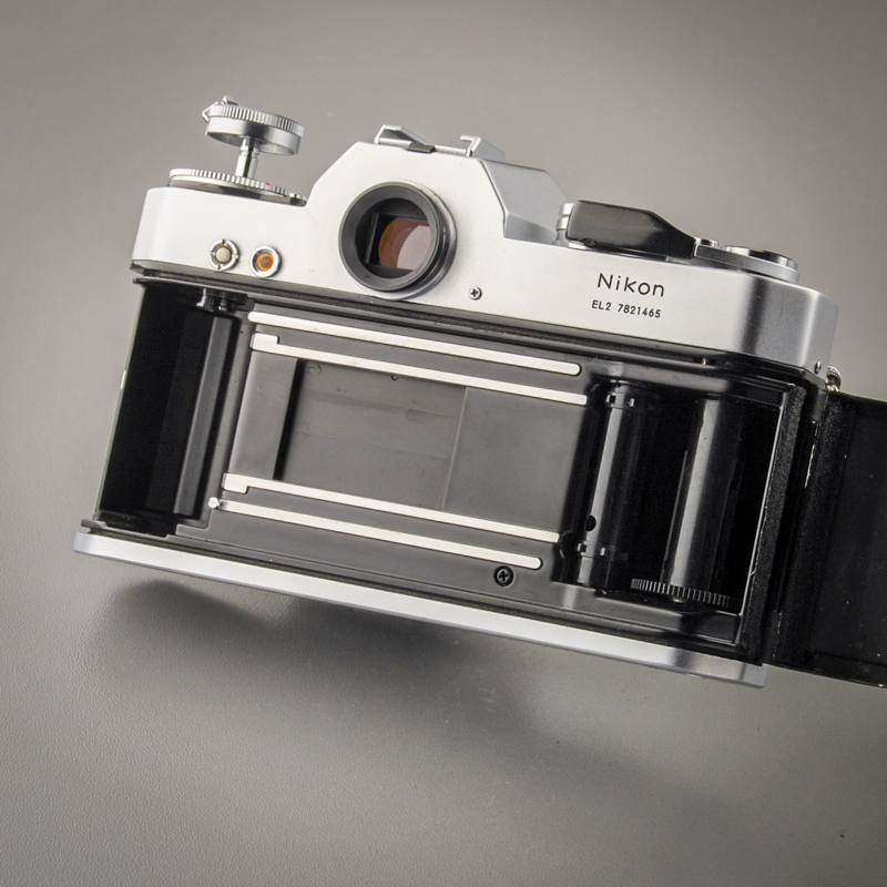 Baujahr 1977. Die Nikon EL2 erlitt das gleiche Schicksal wie die Nikkormat FT3: noch im Jahr der Einführung wurde die Produktion zugunsten des kompakteren Nachfolgers Nikon FE eingestellt. Die EL2 ist deshalb heute recht selten.