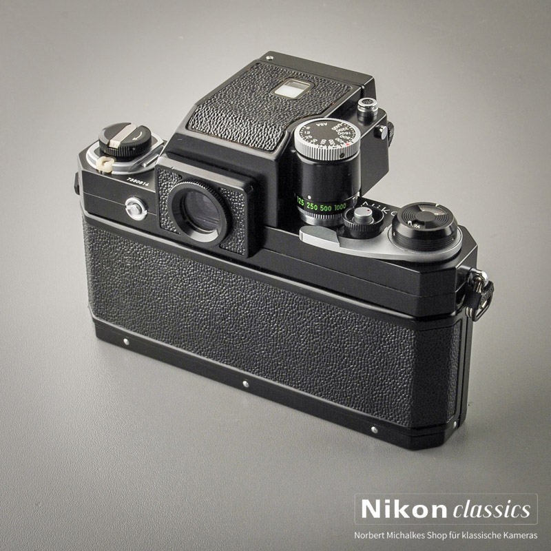 Der wegweisende Nikon-Klassiker in schwerer und überaus robuster Bauweise (eine F3 wirkt dagegen filigran...). Baujahr 1973. Ausgerüstet mit dem modernsten der F-Sucher, dem Photomic FTN mit mittenbetonter Messung, neuer Befestigung am Gehäuse und automatischer Eingabe der größten Öffnung des jeweils verwendeten Objektivs.