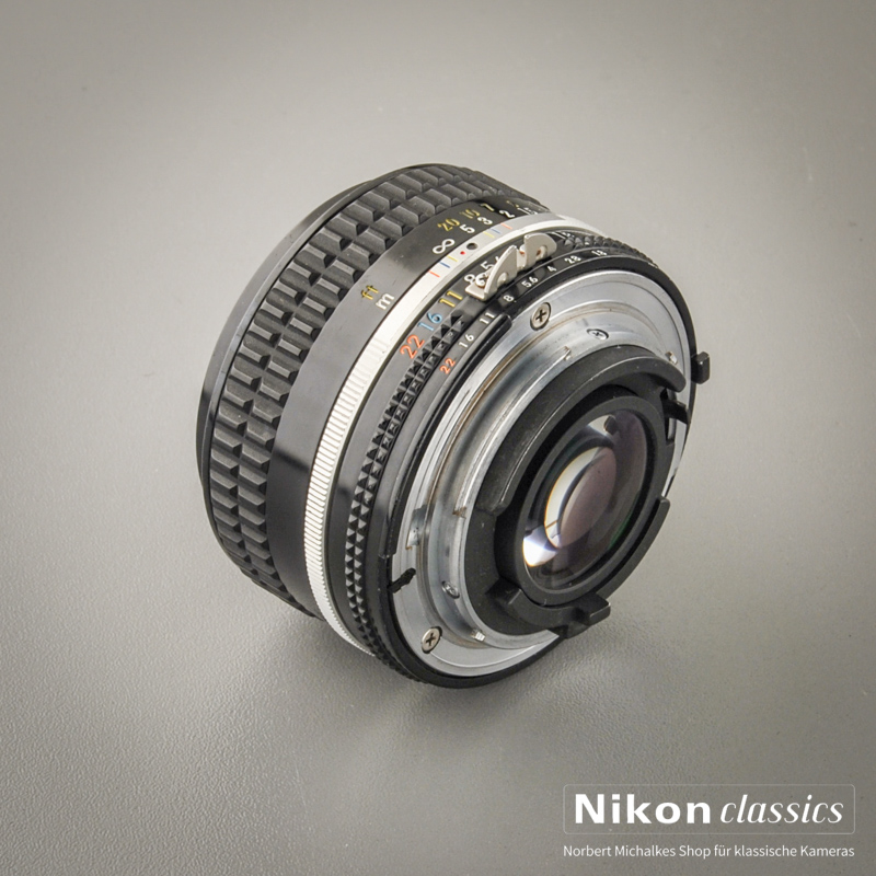 Das manuelle Normalobjektiv 50mm/1:1,8 AIS. Es handelt sich nicht um das einfachere und billigere Serie-E-Objektiv, sondern um das seltenere Original Nikkor in Vollmetall-"Steeped-Nose"-Ausführung!