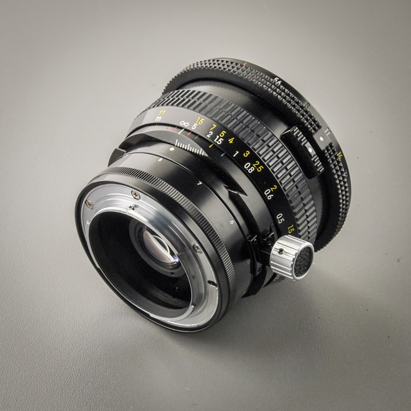 Spezialobjektiv zur Vermeidung stürzender Linien bei Architekturaufnahmen. Auch bestens für Panoramafotografie geeignet. Der Objektivtubus lässt sich mit Hilfe eines Einstellknopfes bis zu 11mm in einer Schwalbenschwanzführung verschieben. Da die Blende und die Entfernung manuell eingestellt werden, ist das Objektiv an allen je gebauten Nikon Spiegelreflexkameras (digital und analog) verwendbar. Baujahr ca. 1977.
