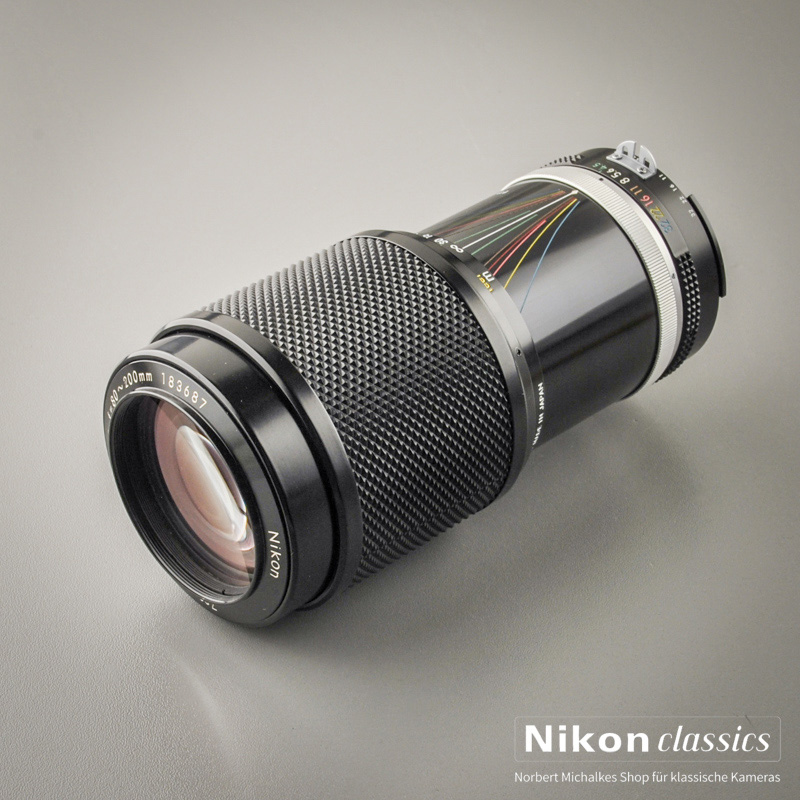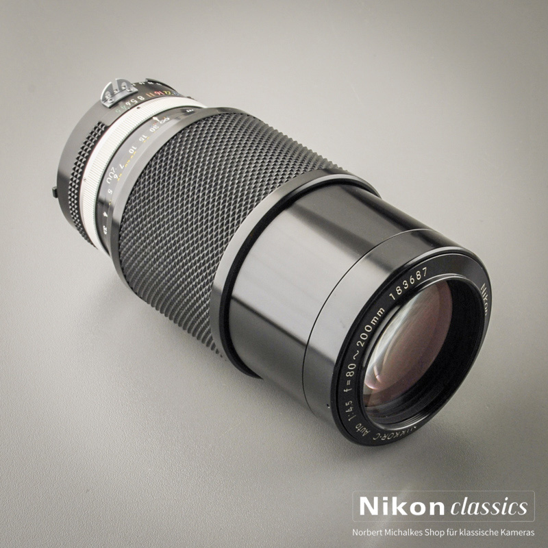 Ein Nikon Klassiker. Frühe Version (1974) des 80-200 mit erstaunlicher Leistung. Die Optik aus mehrschichtvergütetem Nikon-Glas höchster Qualität liefert bei allen Brennweiten scharfe, kontrastreiche Bilder bei ausgezeichneter Bildfehlerkorrektur.