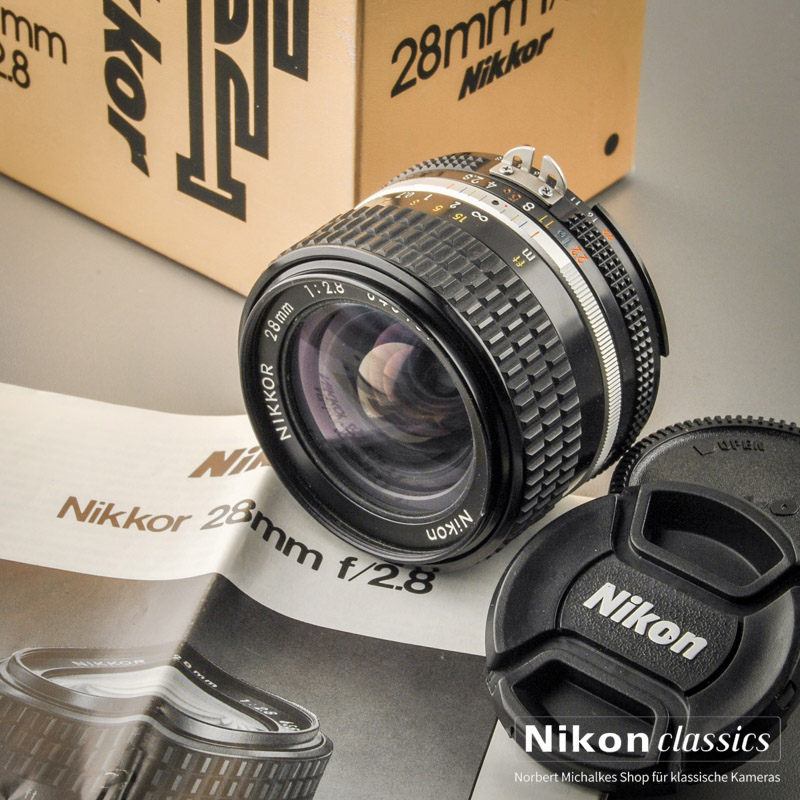 "This is a spectacular and inexpensive lens. There is no sharper wide angle lens made by Nikon for SLR cameras, and it is the only Nikon wide angle, along with the 15mm f/3.5, that is completely free from barrel distortion at ordinary distances. Optically this is almost a perfect lens and one of the most perfect lenses you can get to fit a Nikon camera. Nikon let their designers go wild on this otherwise pedestrian seeming lens. Instead of a simple 5 element design that every other 28mm f/2.8 lens uses, including the original AF version, this lens has EIGHT elements in EIGHT groups. This allows it a level of correction seen in no other Nikon wide angle. Nikon wanted to show the optical world who was boss here."